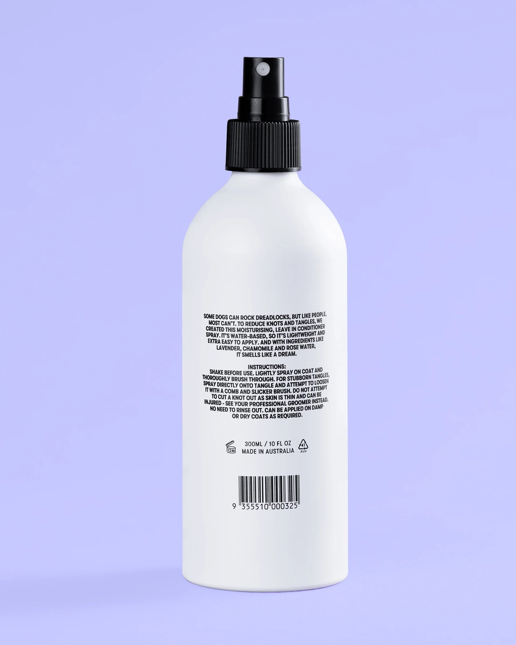 Some dogs can rock dreadlocks, but like people, most can’t. To prevent knots and tangles, we created this moisturising Leave in Conditioner Spray. It’s water-based, so it’s lightweight and extra easy to apply. And with ingredients like Coconut Oil, Chamomile and Rose Water, it smells like a dream. 300ML.