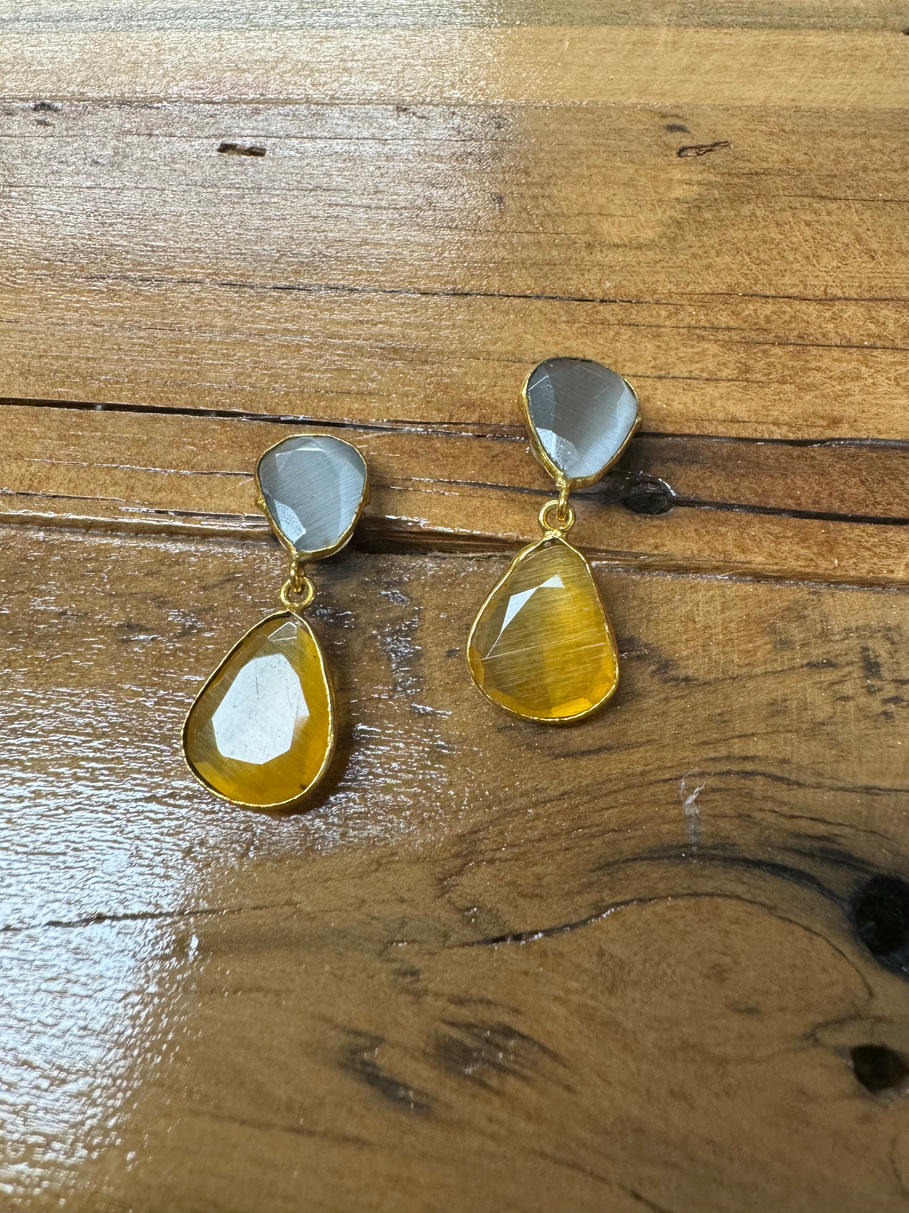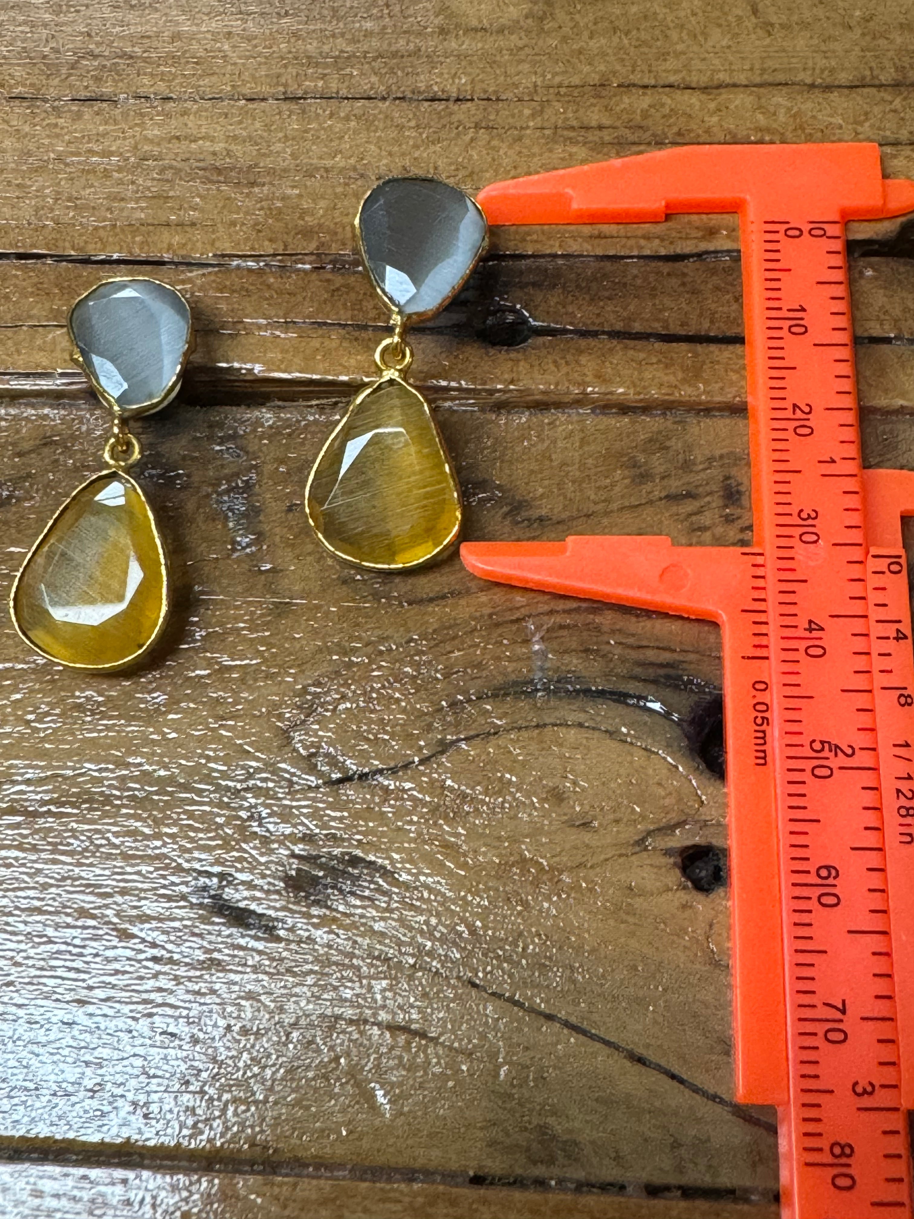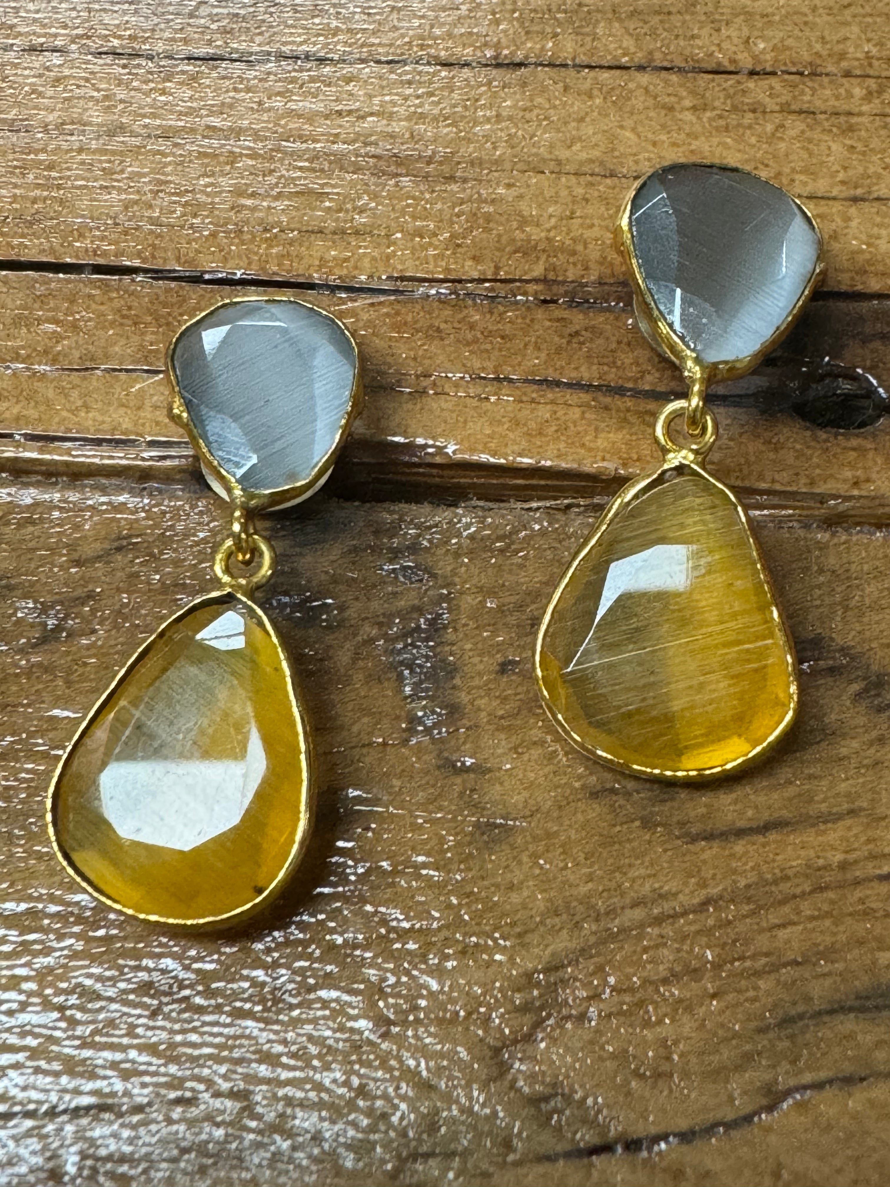 Assorted semi precious two stone drop earrings from Meshca Jewellery. All handmade and due to their natural origin, gemstones and pearls may exhibit slight variations in color and size. This is what makes each heirloom piece truly unique, just like you.