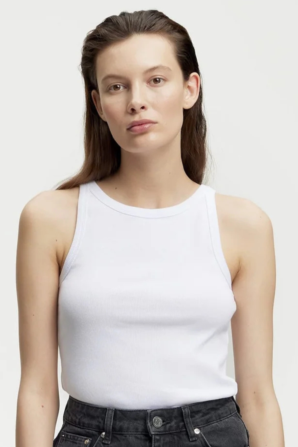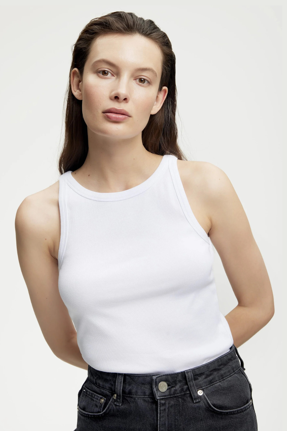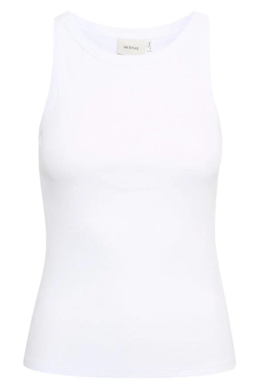 Gestuz ramps up wardrobe essentials with this high neck, sleeveless top. In a stylish cut with a high neck and back, and thin shoulder straps. Made of a responsible blend of Better Cotton. Ideal for layering and easy to mix and match. Also Available in Malibu Blue, String and Black.