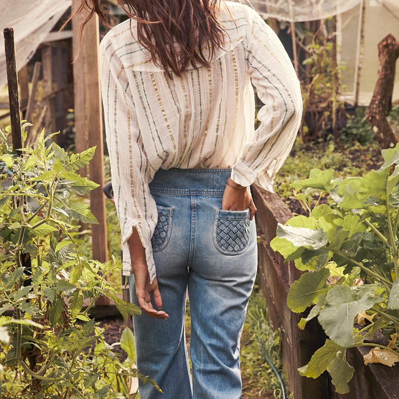 These 70’s style jeans are a super sexy snug fit with plaited pocket detail and flattering hi waist