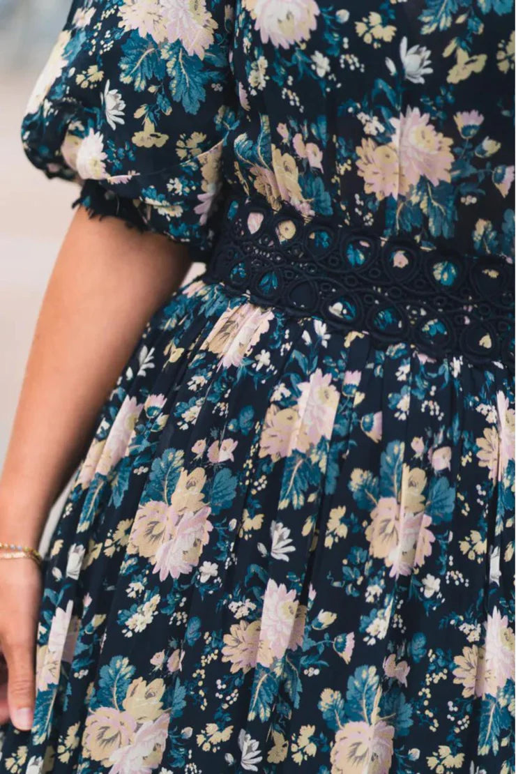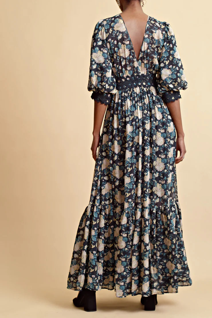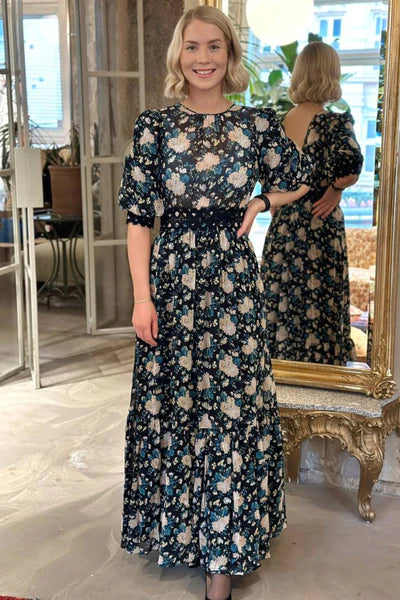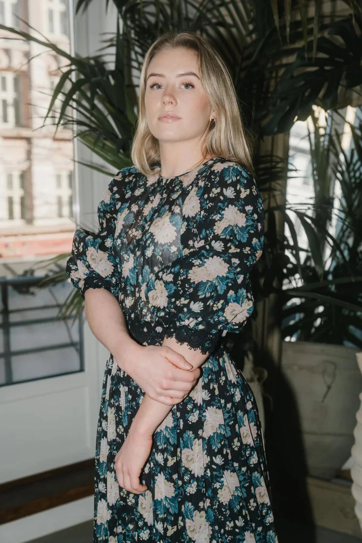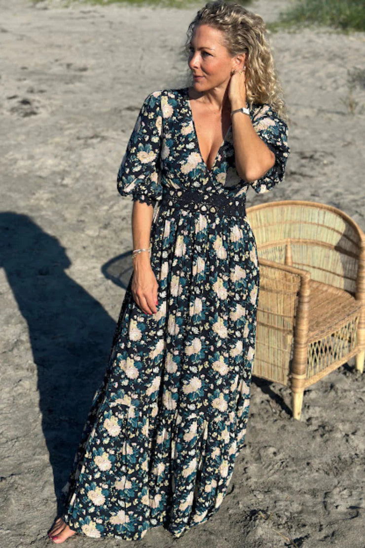 The ByTimo Georgette Maxi Dress is cut in our delicate FSC certified viscose georgette quality. The dress has a maxi length, a fitted waistline and elbow length, and puffed sleeves with tight cuffs. The waistline and cuffs of the dress are detailed with a unique vintage-inspired lace-ribbon. This dress can be worn with the v-neckline or round neckline to the front.So it is fully reversible making it a wonderful addition to your event wear wardrobe in that you get two looks for one! It is bra friendly.
