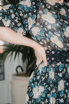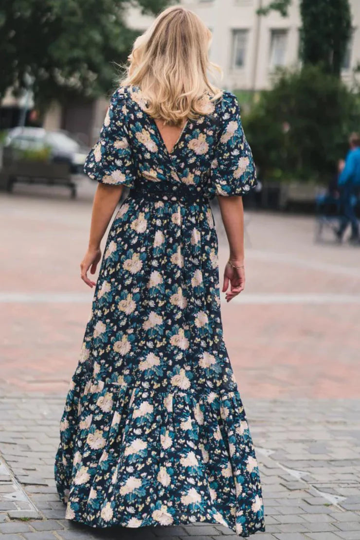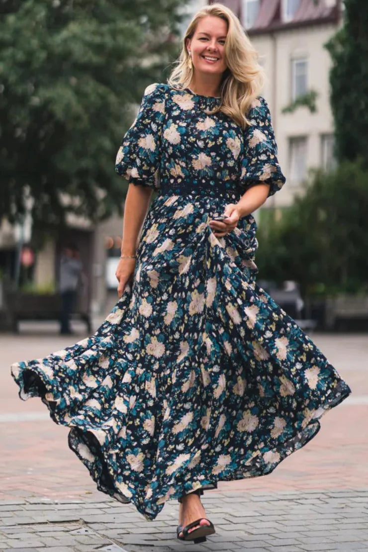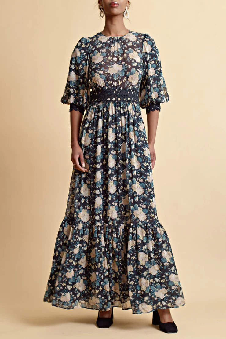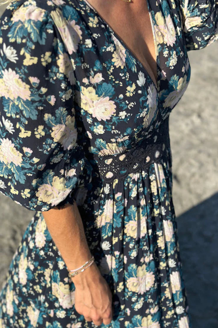 The ByTimo Georgette Maxi Dress is cut in our delicate FSC certified viscose georgette quality. The dress has a maxi length, a fitted waistline and elbow length, and puffed sleeves with tight cuffs. The waistline and cuffs of the dress are detailed with a unique vintage-inspired lace-ribbon. This dress can be worn with the v-neckline or round neckline to the front.So it is fully reversible making it a wonderful addition to your event wear wardrobe in that you get two looks for one! It is bra friendly.