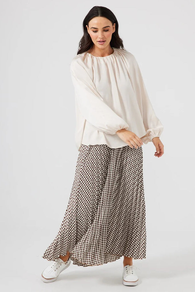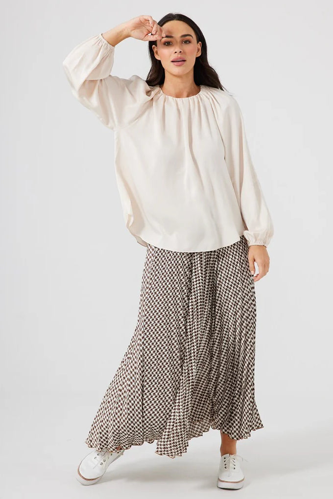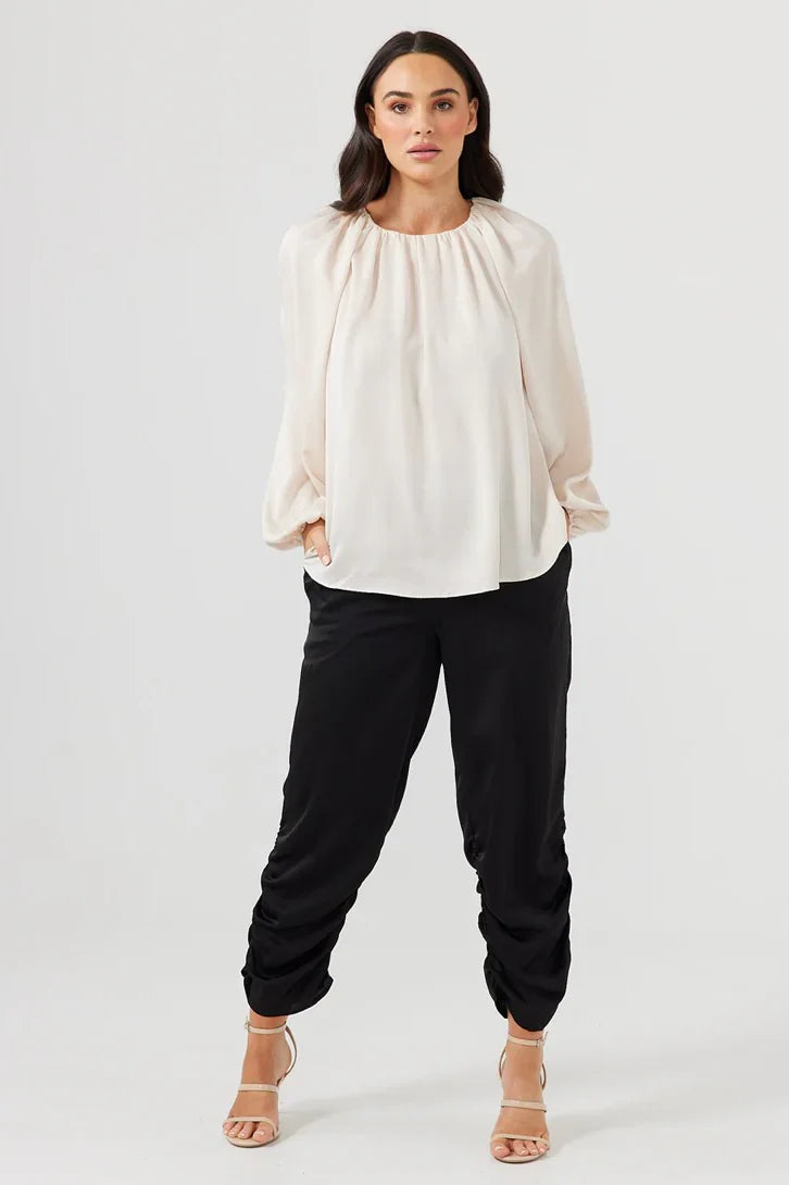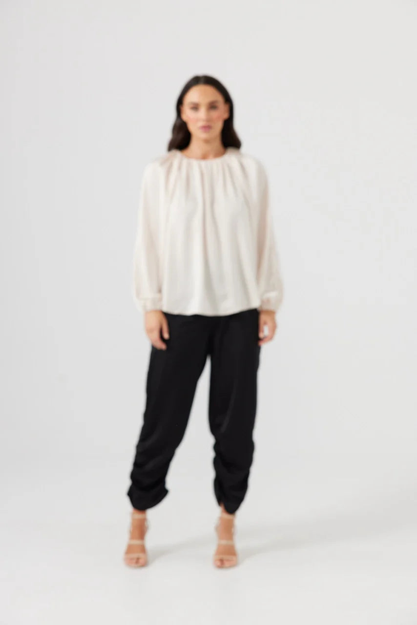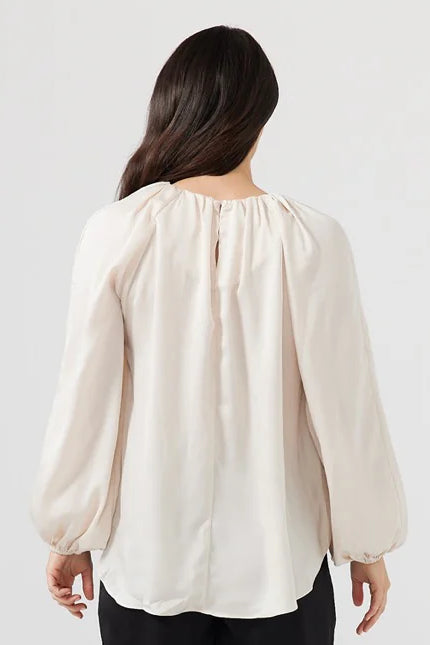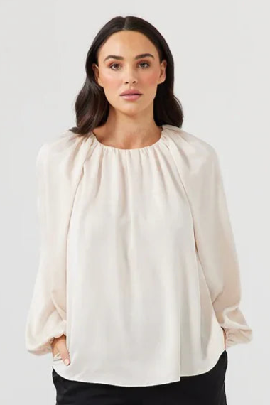 Your new winter fave, the In Motion Top is the perfect mix between classic and fun. The gathered neckline detail, along with the curved high-low hemline and balloon sleeve, make it perfect for almost any outfit! We love leaving it untucked with some wide leg pants for a dramatic look, or doing a simple front tuck into some jeans for a smart-casual look.