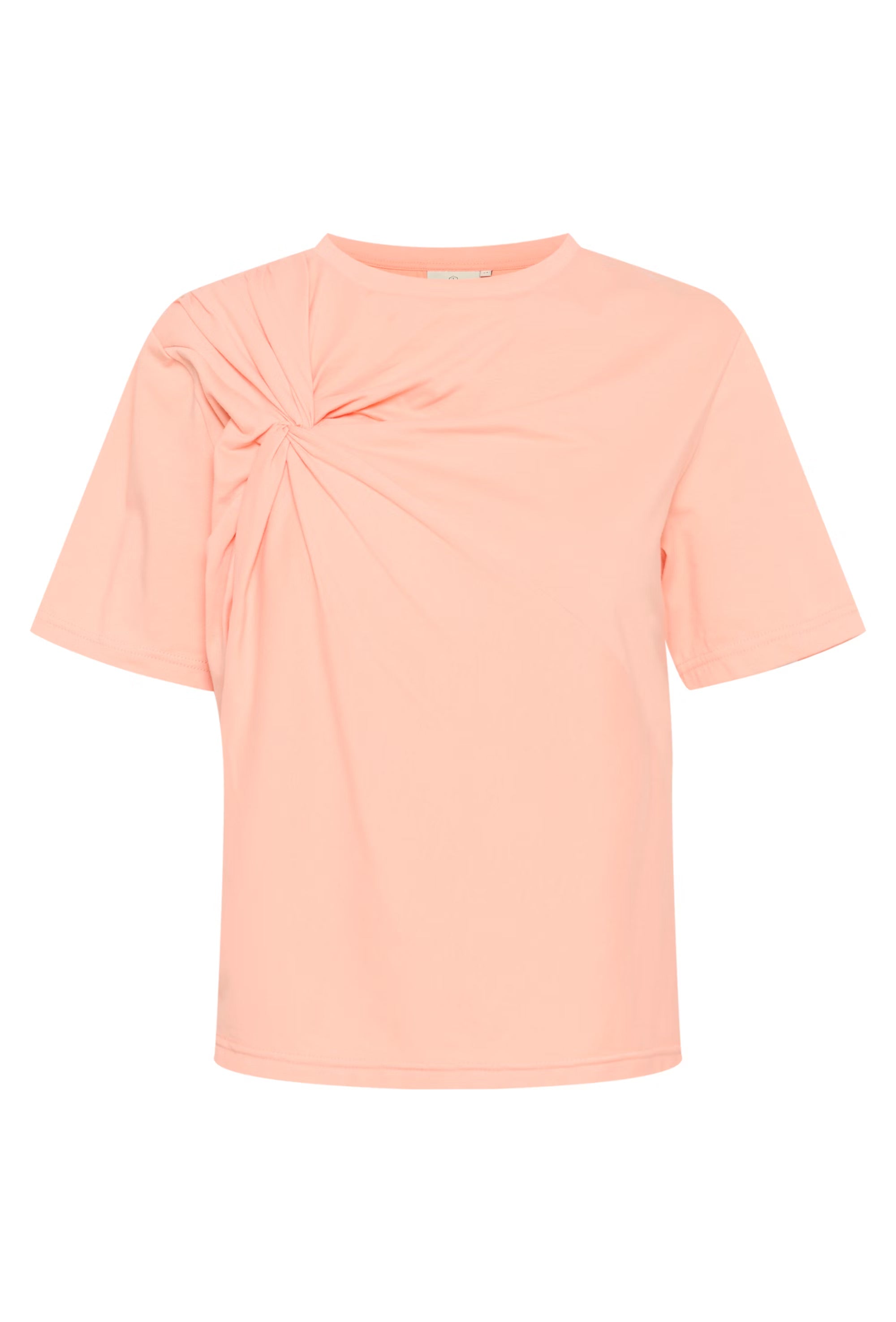 A great T shirt with that little point of difference from Scandi brand KAFFE. With a round neck this T shirt is boxy with a twisted fabric detail on one side. A very flattering shape which fits true to size.