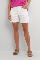 These shorts offer a classic five-pocket design with rolled hems and a flattering mid-rise fit. Crafted in a structured woven fabric with slight stretch for everyday comfort and a neat silhouette.