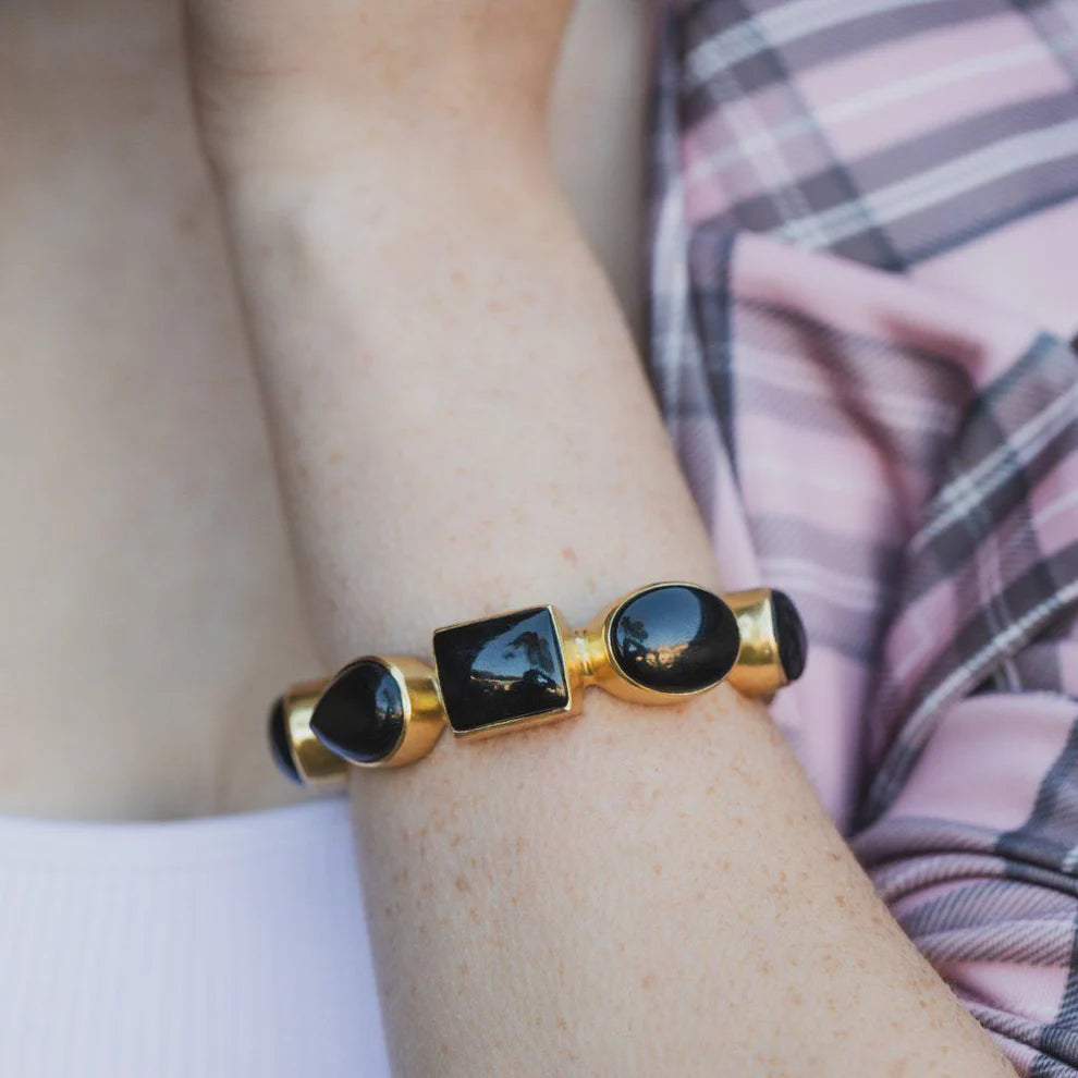 Our chunky bracelet cuff is every bangle lover’s dream. Adjustable with stunning labradorite stones in varying cuts , this bangle is a statement like no other.