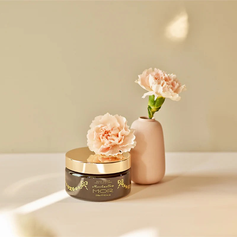 A silky luxe body cream designed for the ultimate decadence with Extracts of Marshmallow, Peach, Ginger and Aloe Vera. Containing a rich base of Shea and Cocoa Butters and infused with nourishing Rosehip, Avocado and Wheatgerm Oils, this beautifully whipped Cream will leave skin feeling enriched, exquisitely smooth and delicately scented.