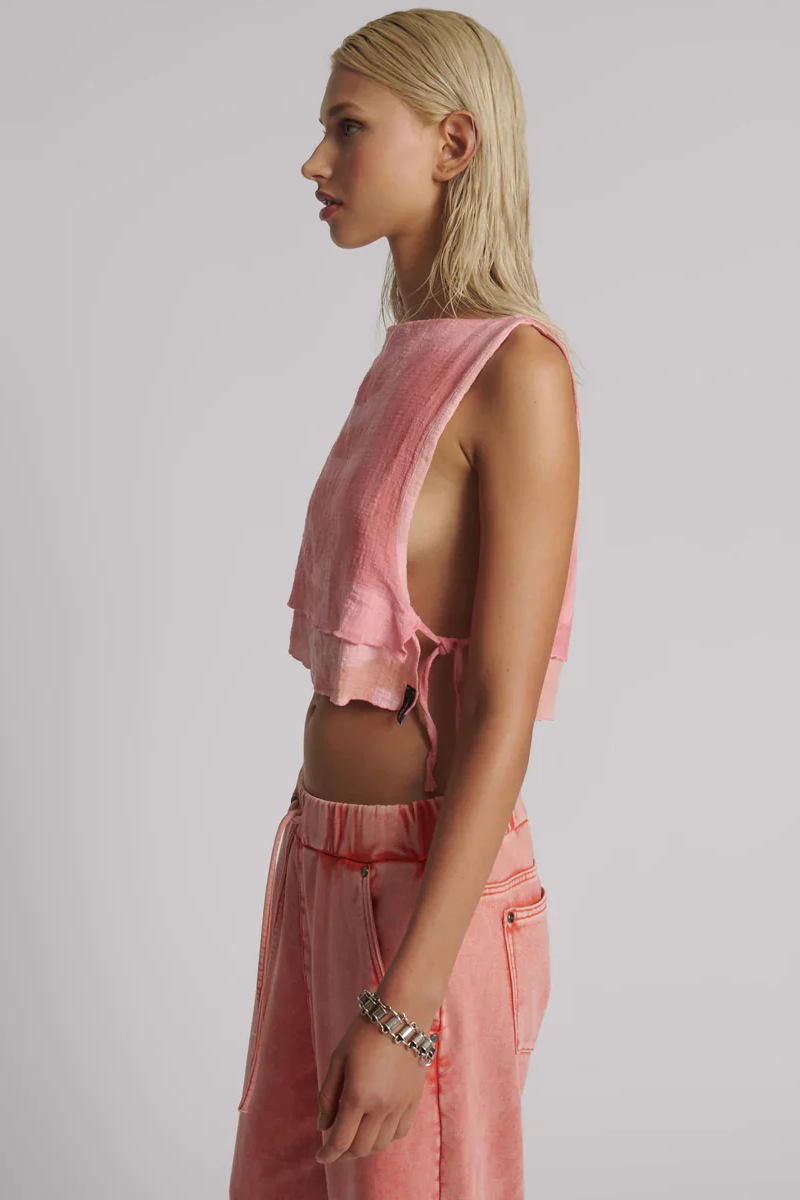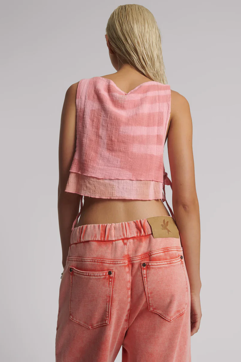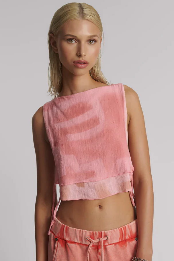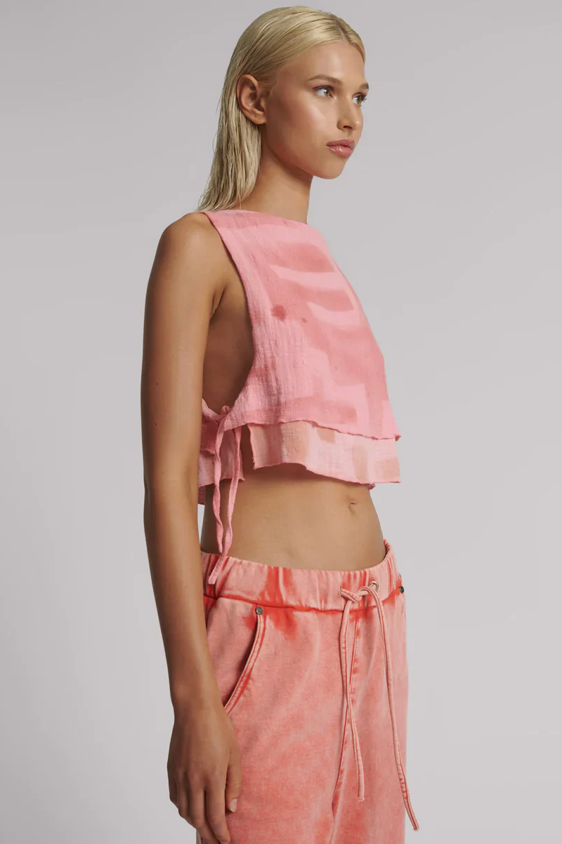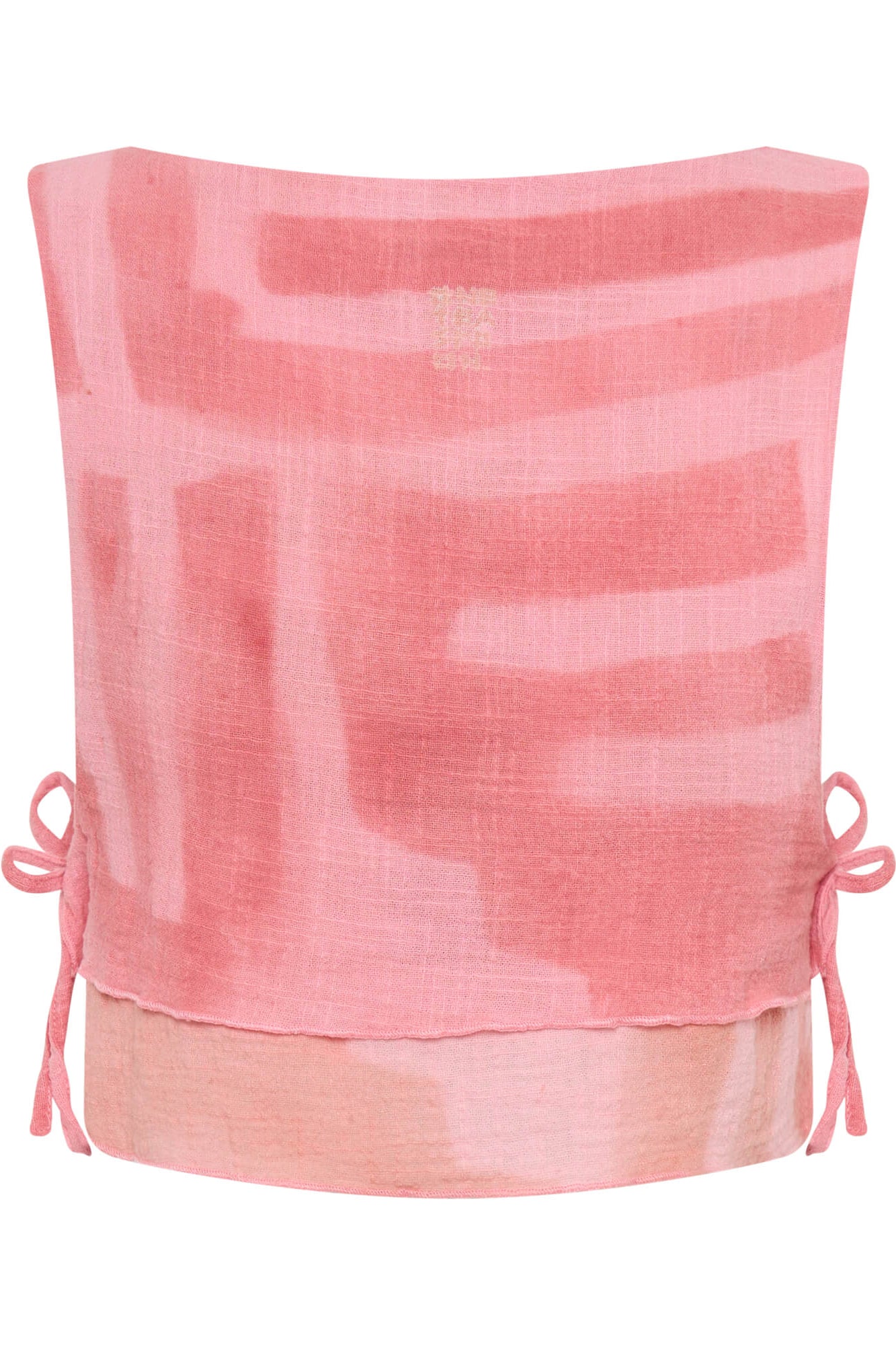 Moai Hand Painted Muslin Double Layer Top | Pink