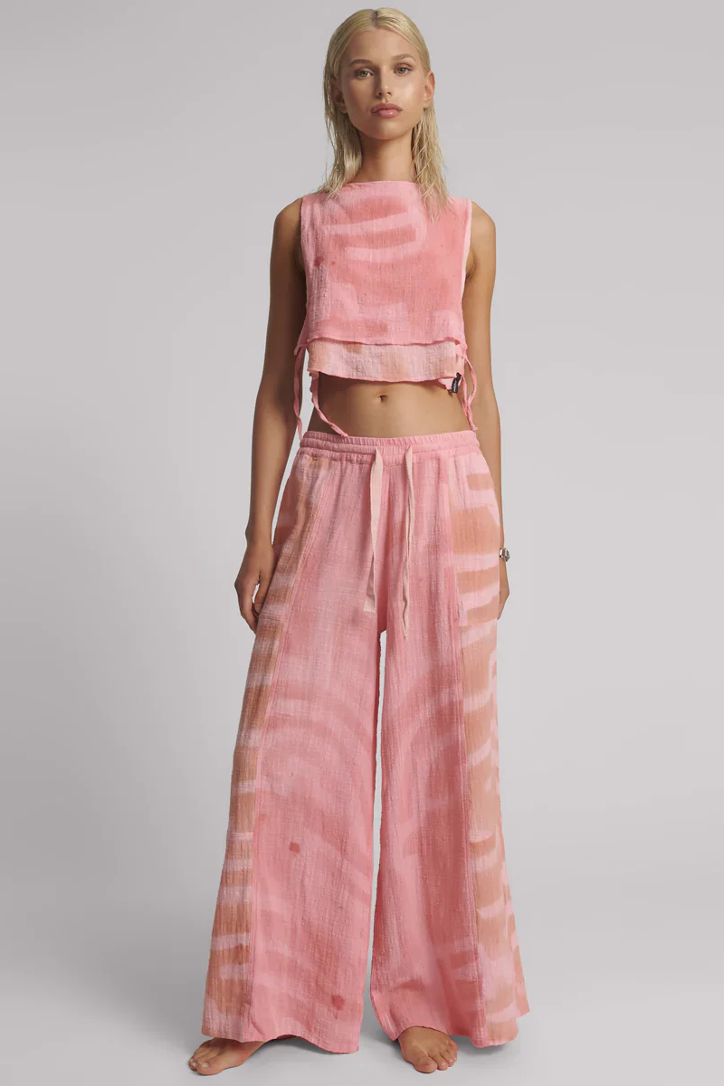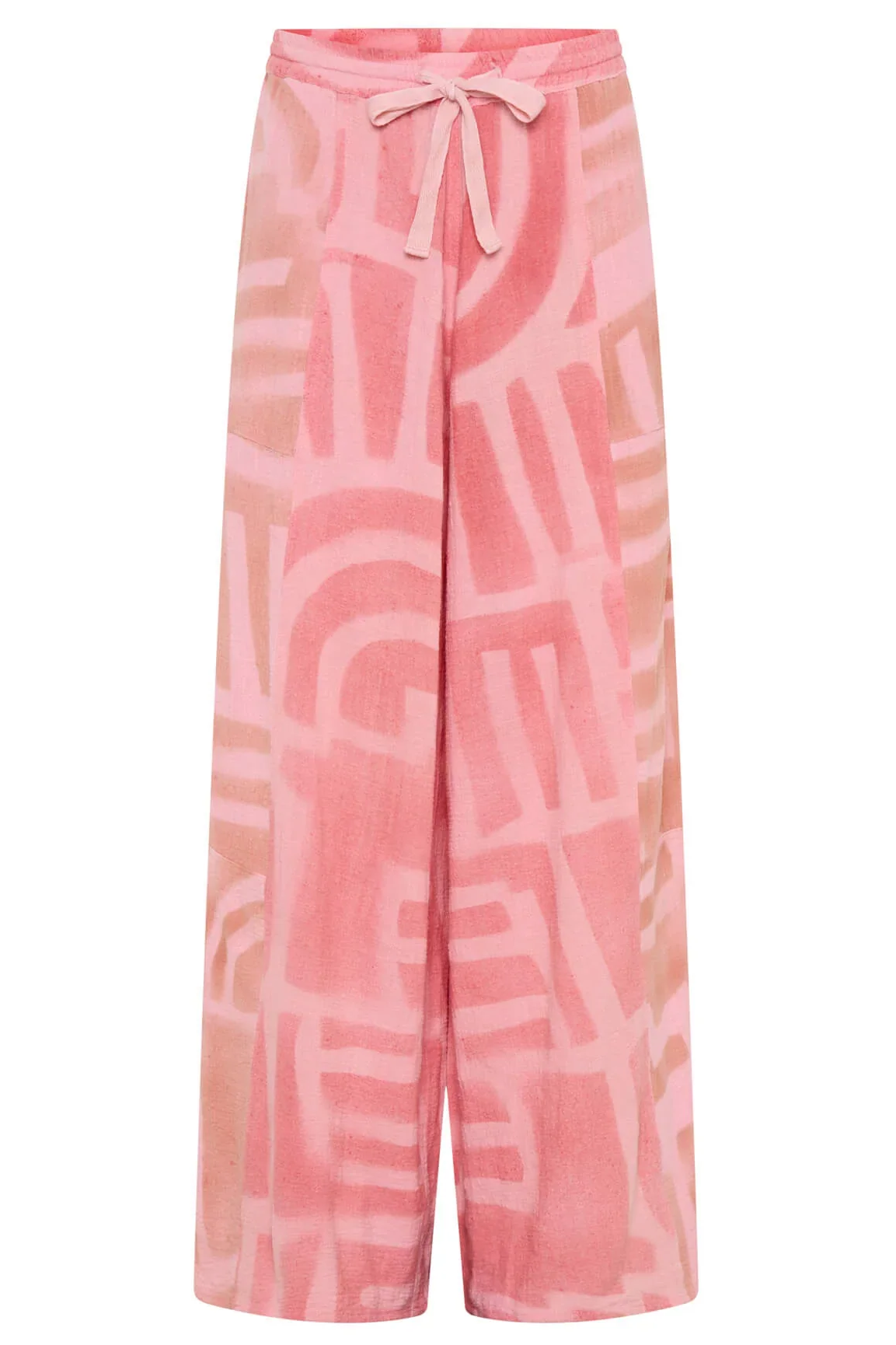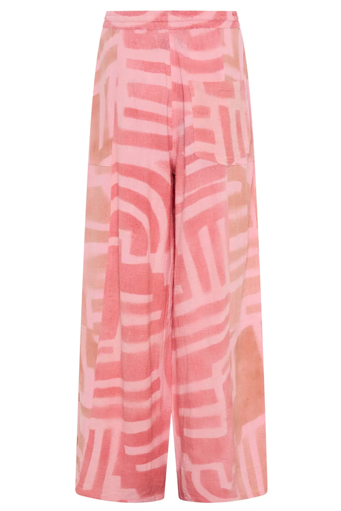 Moai Hand Painted Muslin Palazzo Pants | Pink