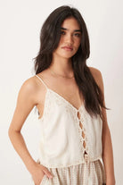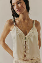 Add the loveliest touch to any look with this forever femme and flowy cami by Intimately featuring delicate embroidery around the trim.