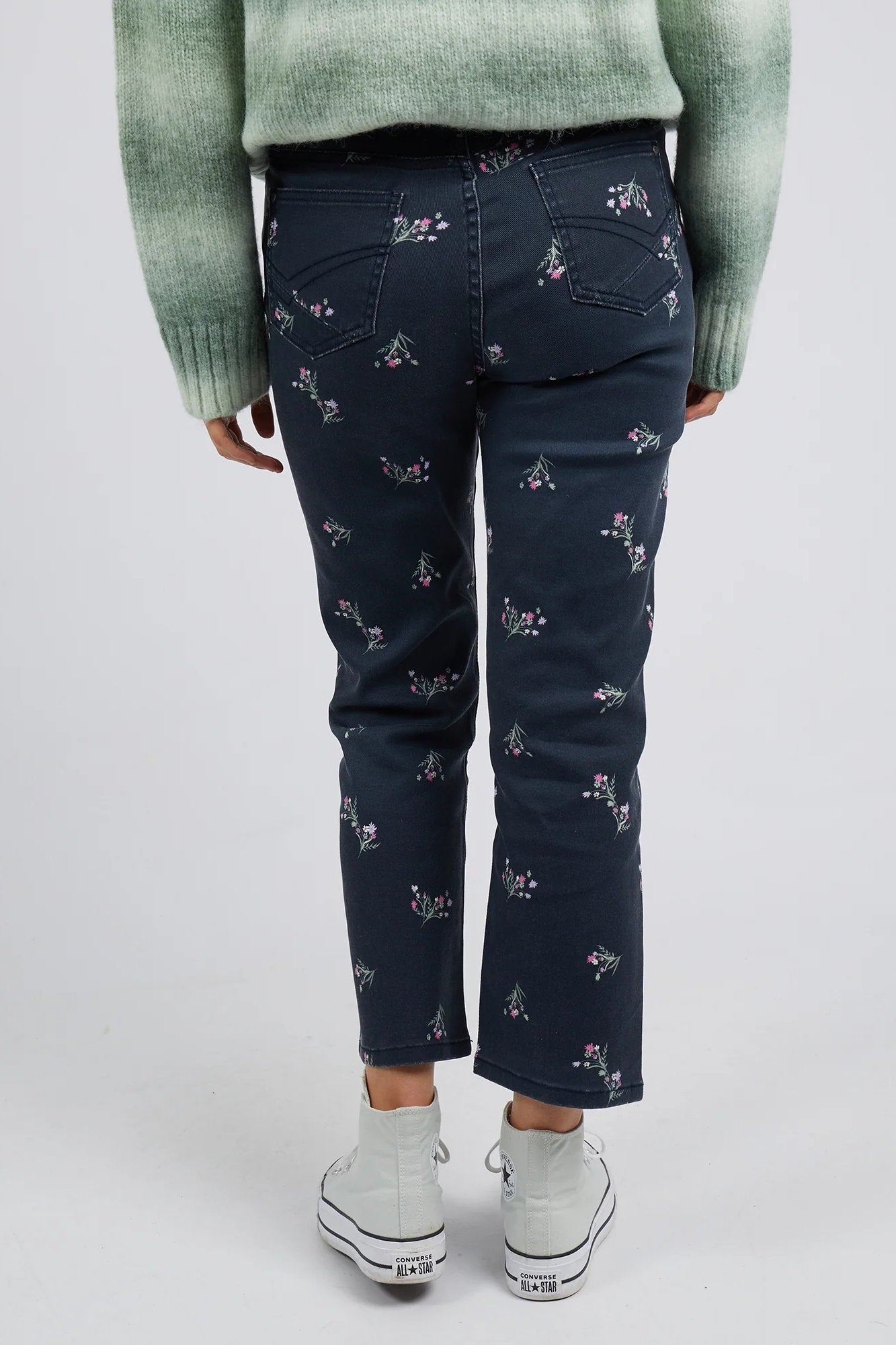 Styled in Elm's best selling Ada Jean cut, the Bloom Floral Jean adds the fun of a cute floral yardage to take your seasonal denim dressing to the next level.