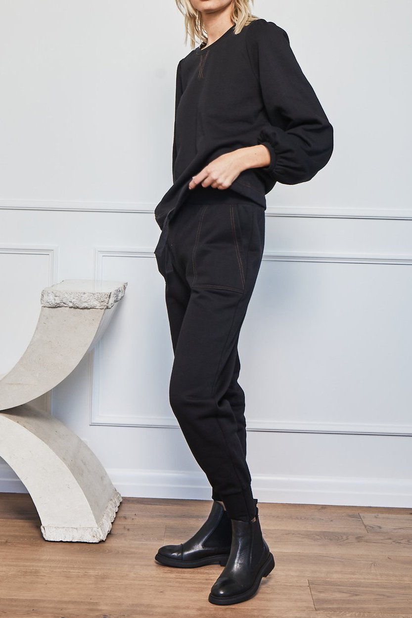 A track top fusing fashion and femininity. The blouson sleeve and draw-string waist together create a softly curved silhouette. Cut in a quality fleece your track pieces are perfect for effortless on-trend dressing.