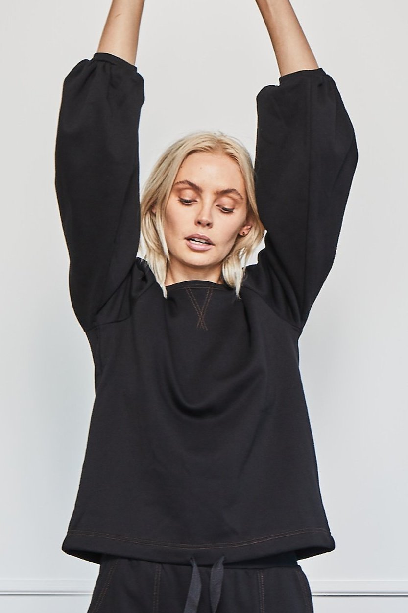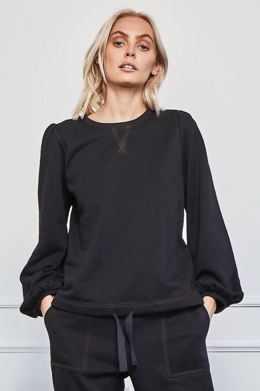 - round neck with blouson sleeve