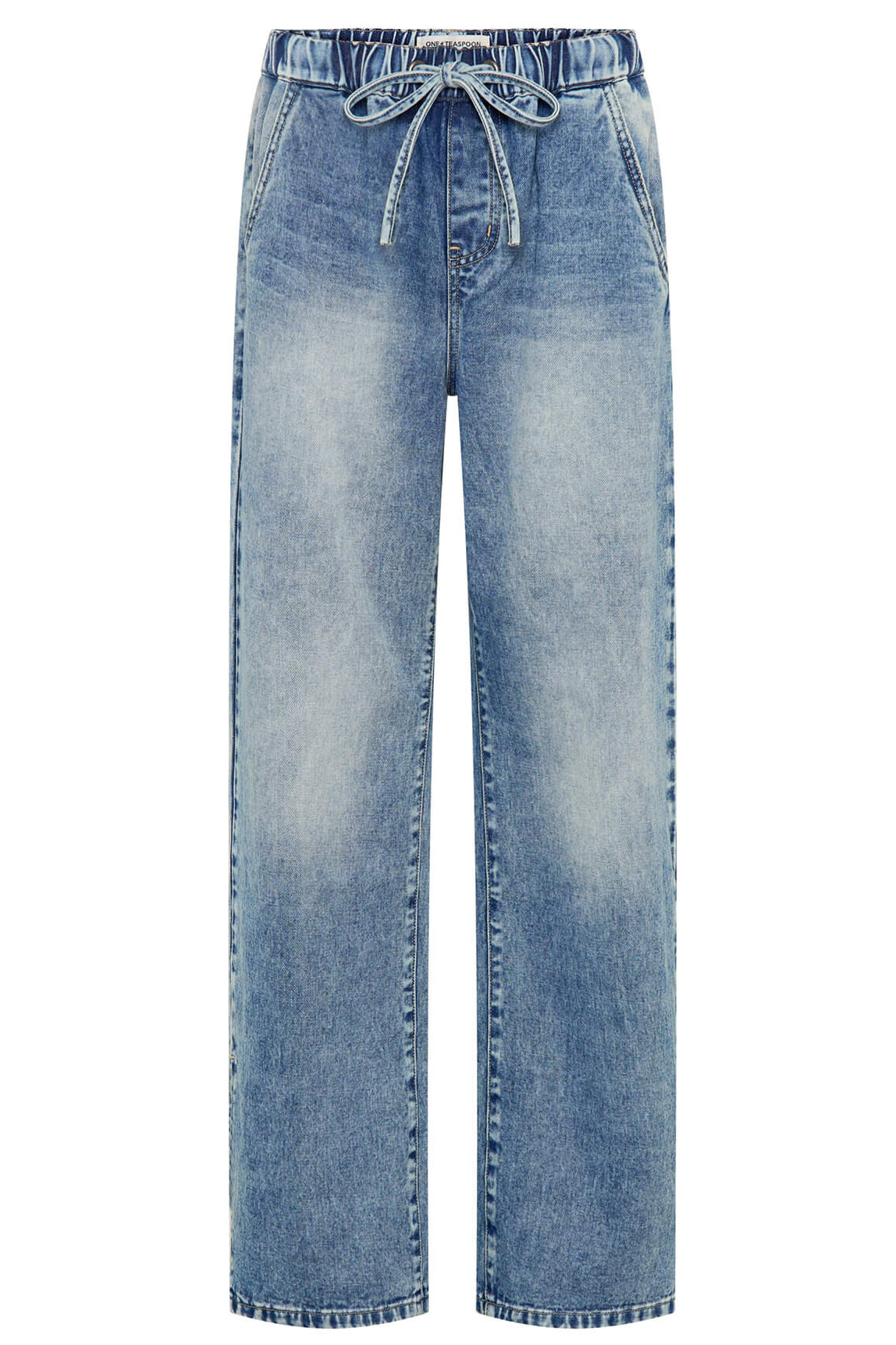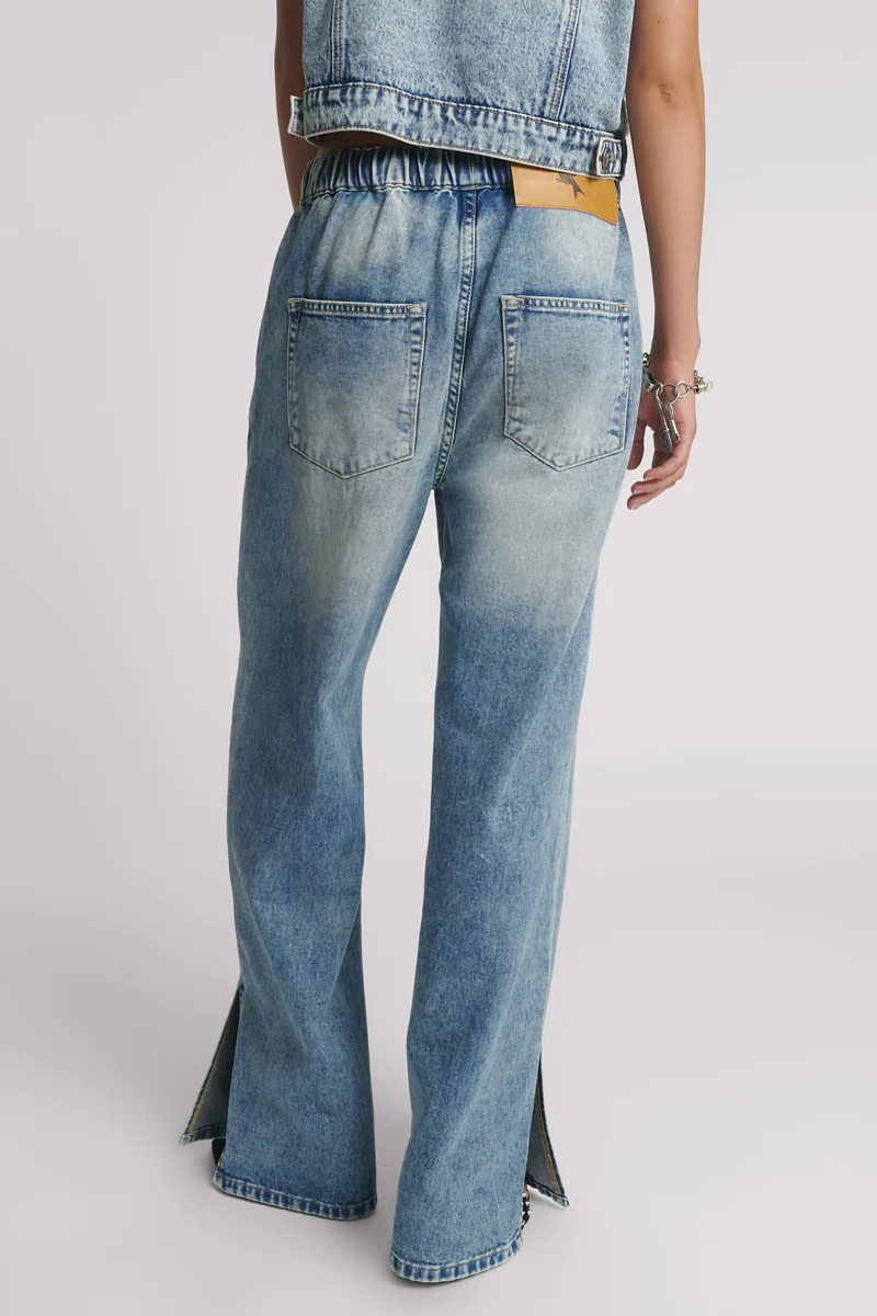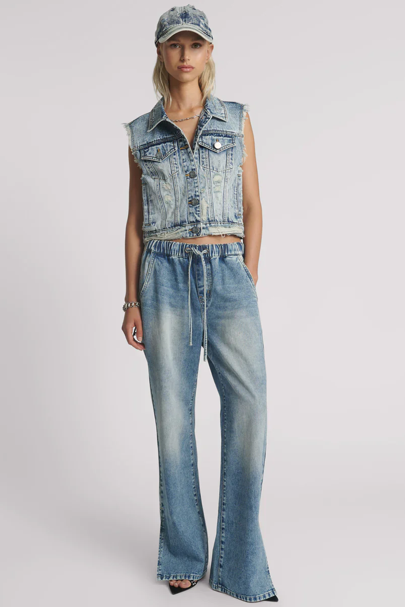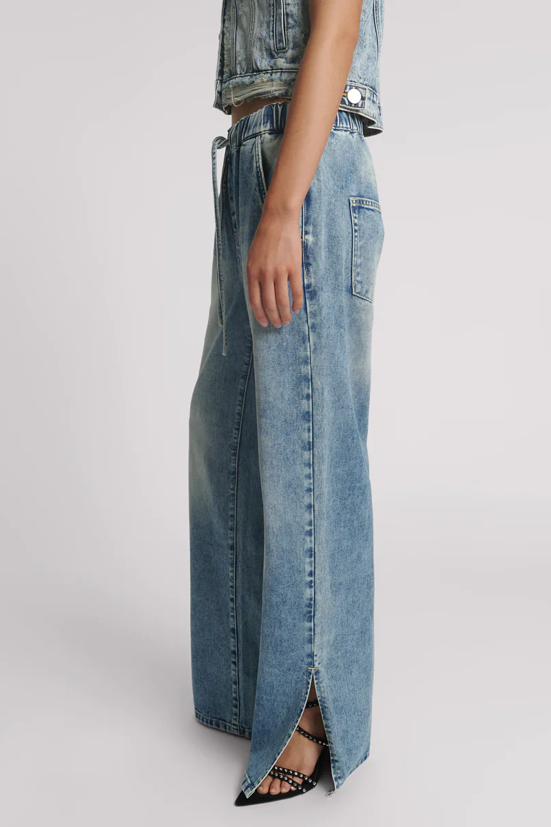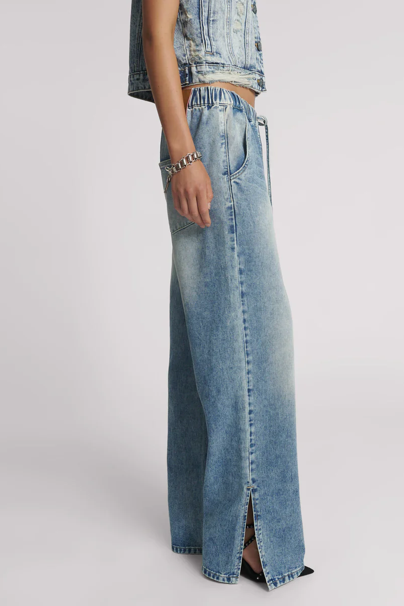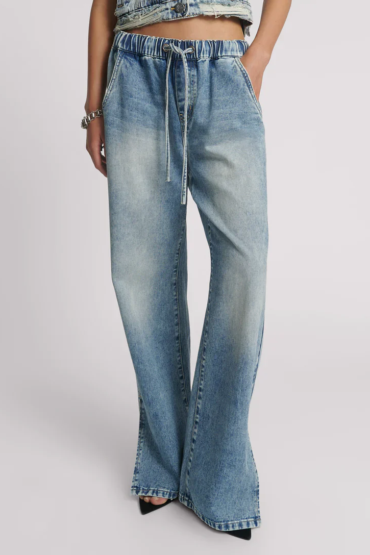 Roadhouse Wide Leg Drawstring Denim Jeans in Sunset Blue