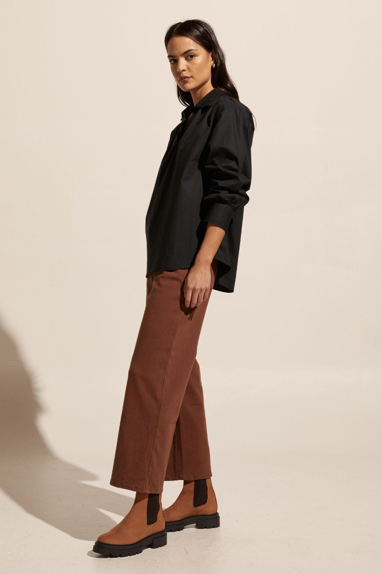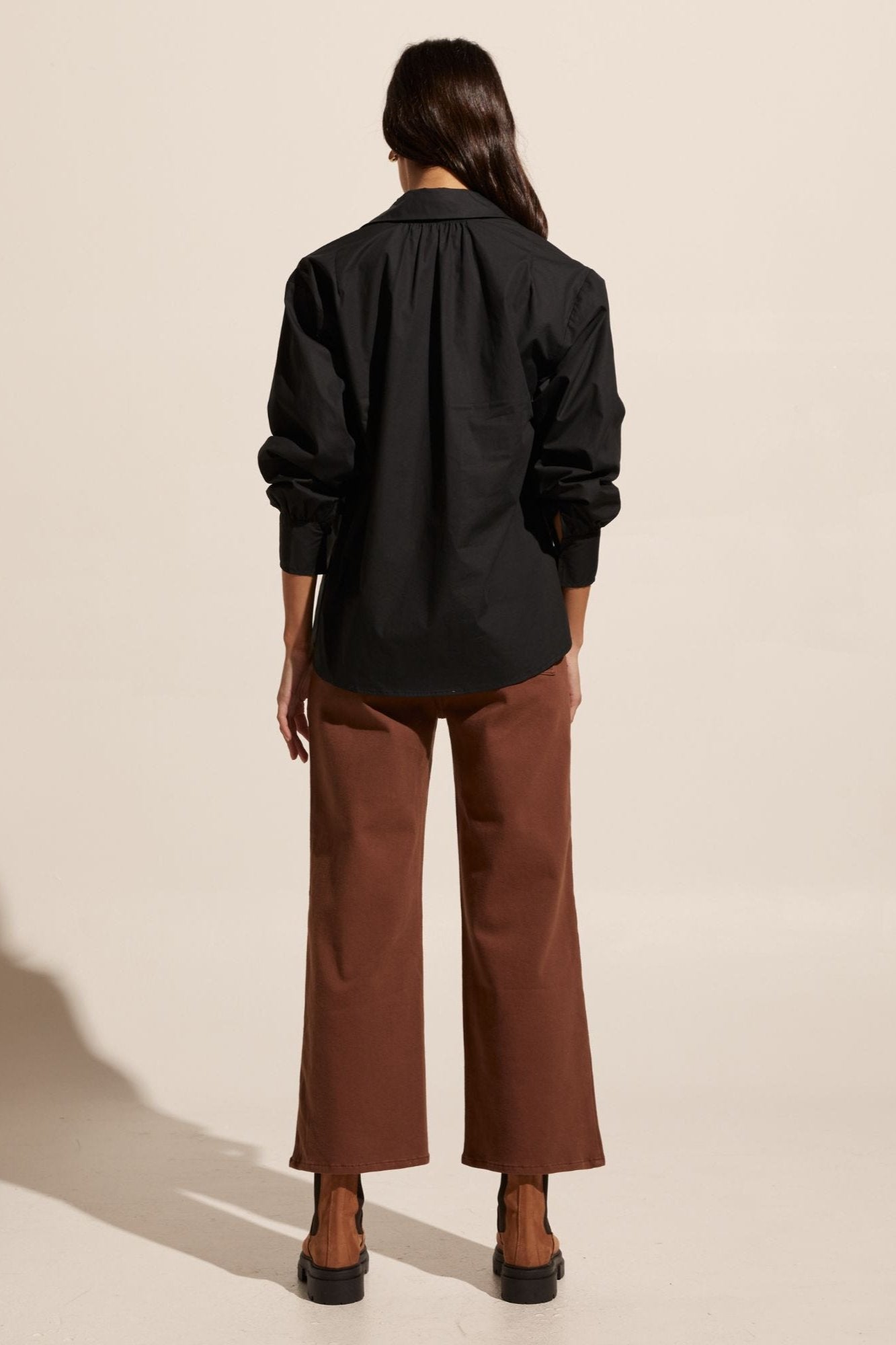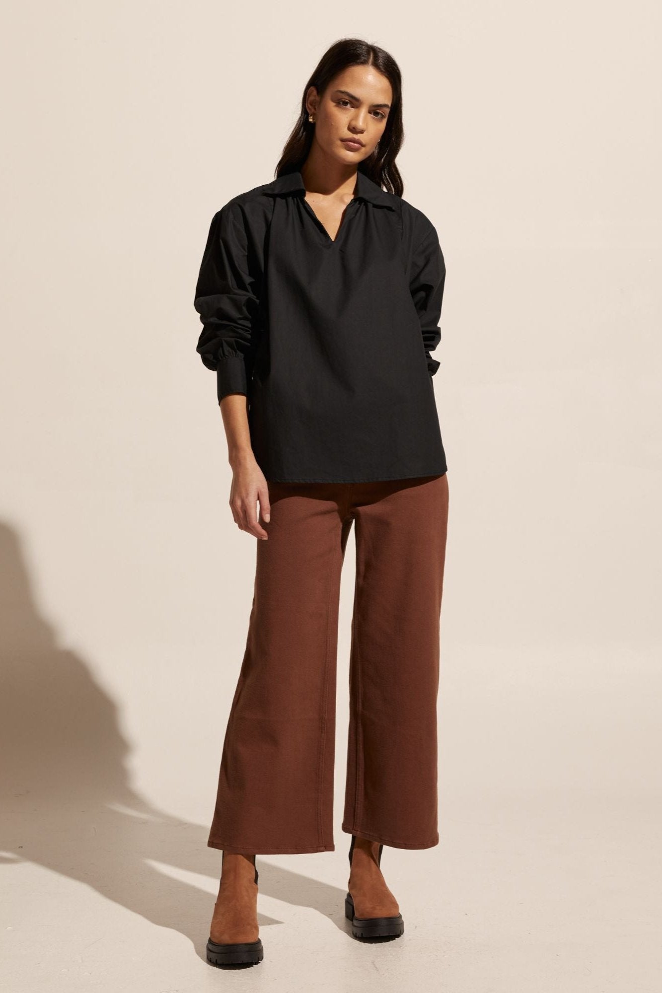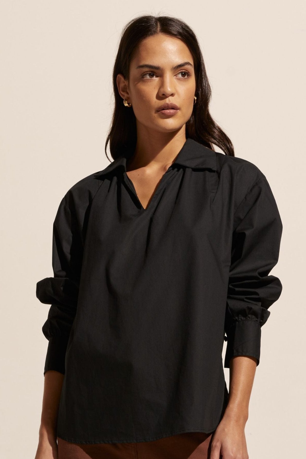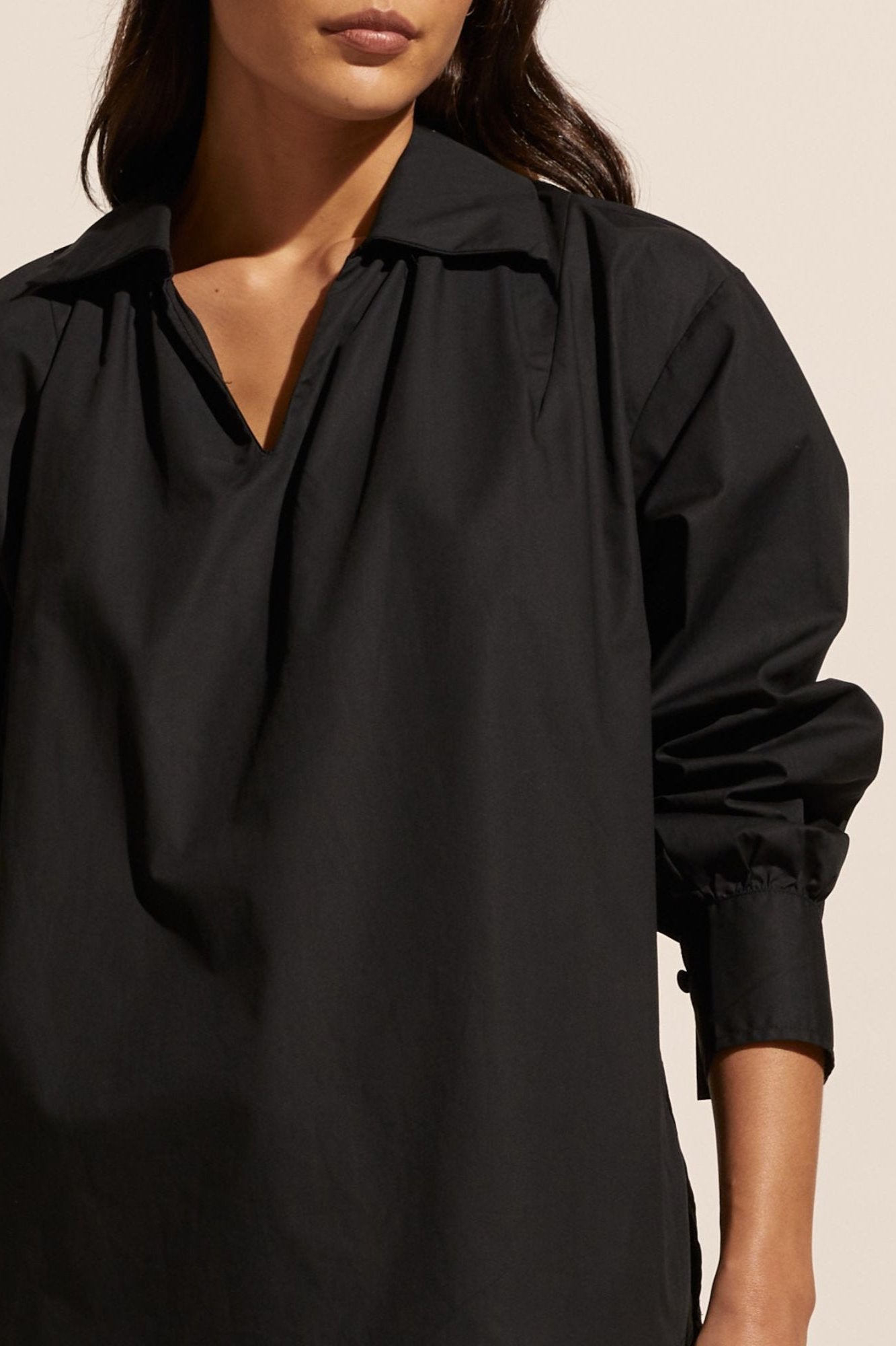 The stroll channels a slight 70’s vibe with it’s splayed collar that moves into a flattering v neckline. Push up the sleeves for a laid-back aesthetic or keep them down for a smarter work-ready look. Crisp and fresh this piece is great worn over denim or your favourite pant and is sure to become a hardworking favourite in your trans-seasonal wardrobe. Also Available in Porcelain.