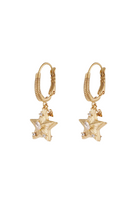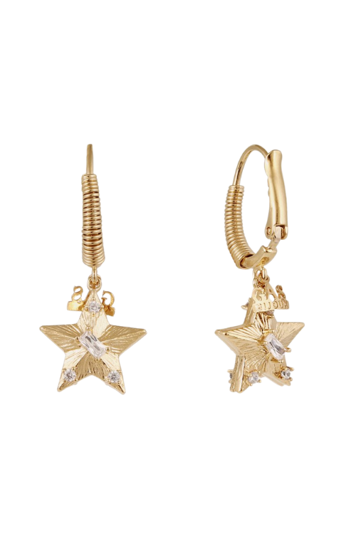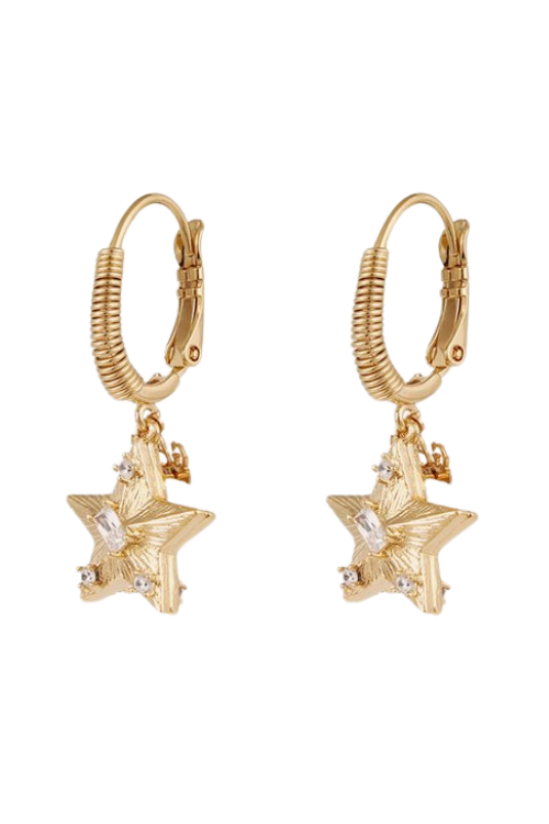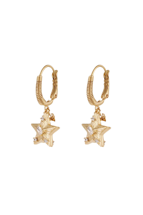 Gold plated earrings featuring with a star adorned with rhinestones.