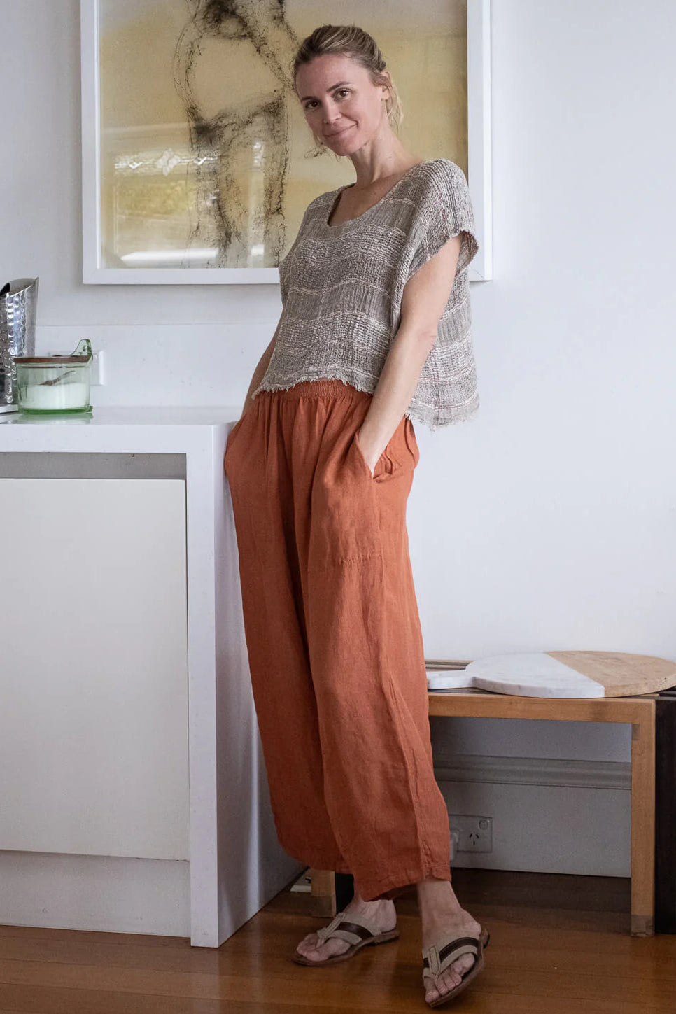 The Top Icaro Michelangelo in Capria is a masterpiece of simplicity and elegance. Crafted from breathable, lightweight fabric in a timeless natural hue, this top features clean lines and artisanal detailing that embody effortless sophistication. Its versatile silhouette is perfect for layering or wearing on its own, making it an essential piece for any refined wardrobe.