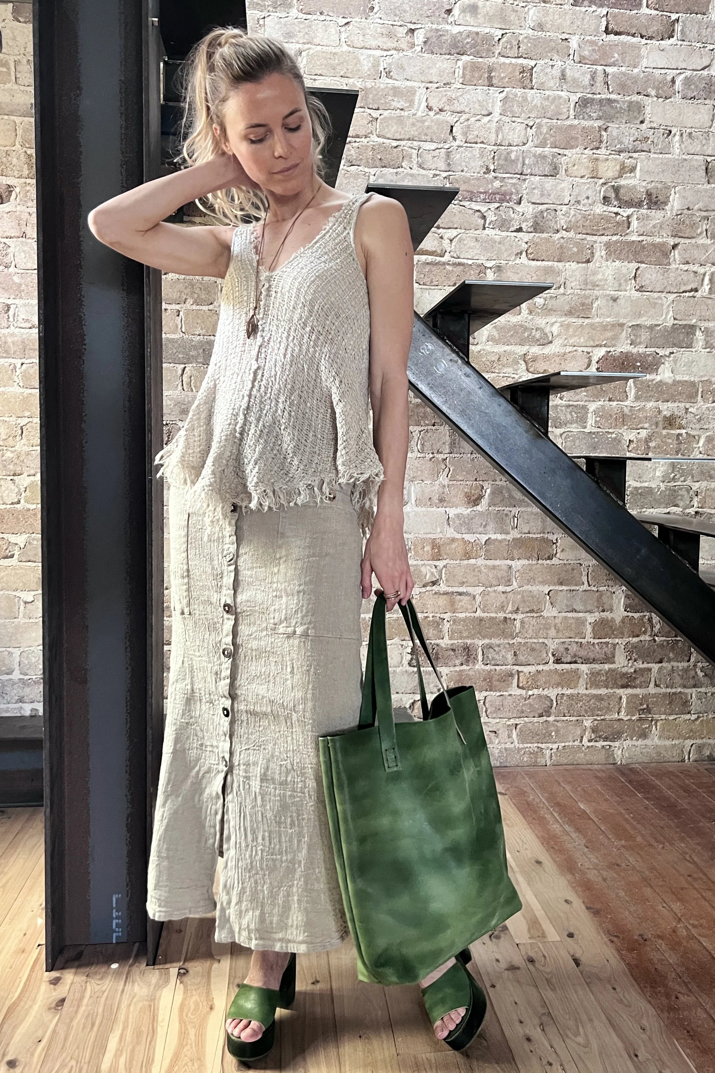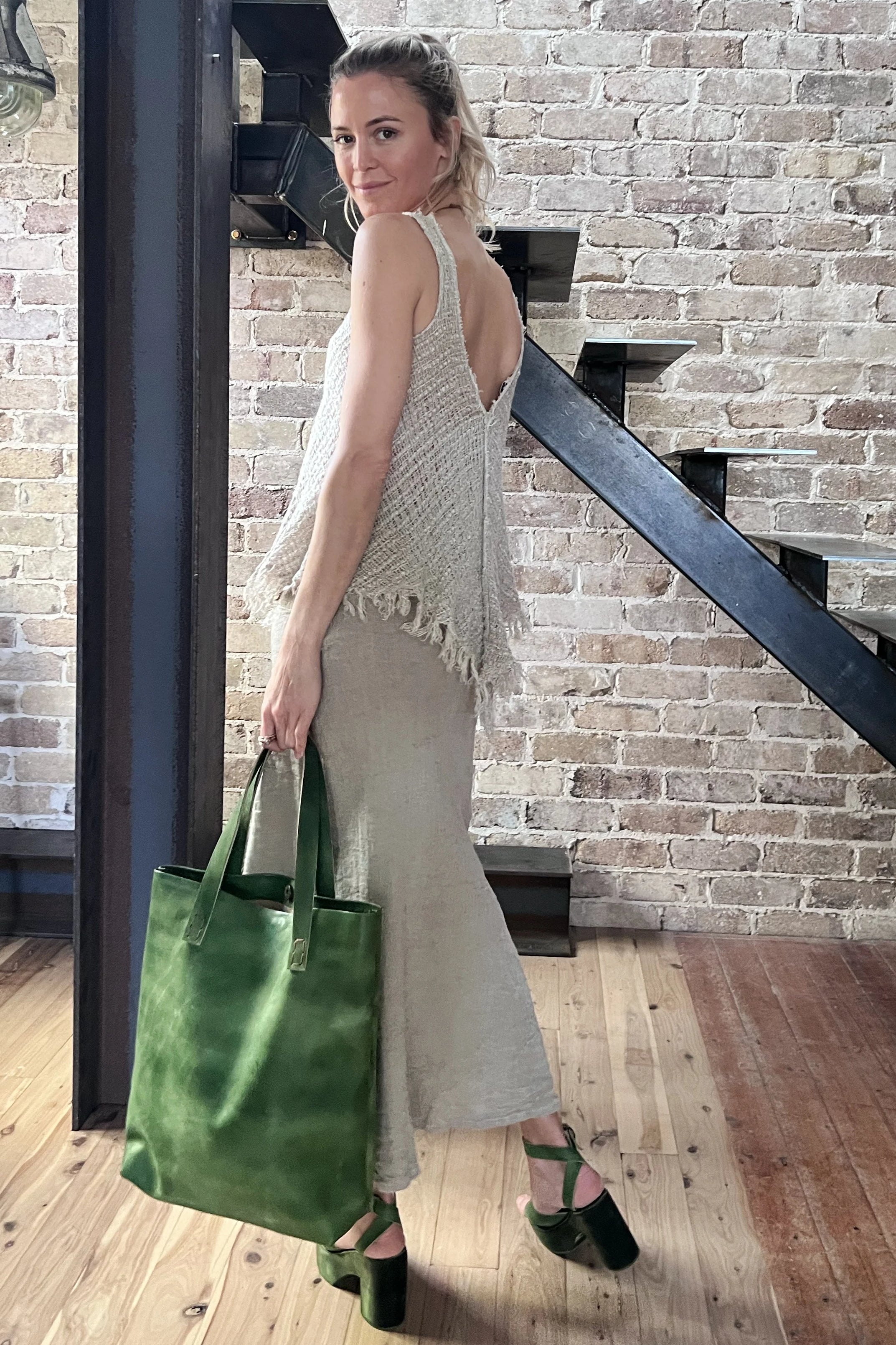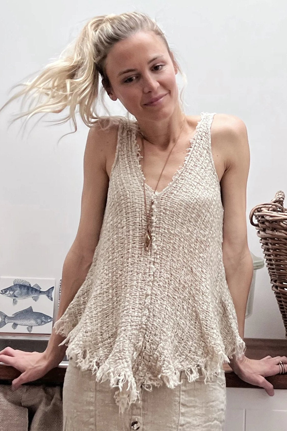 The Bazaar Piu in Maremma is an essential cami in La Bottega di Brunella's signature open weave maremma fabric. Featuring a deep v neck front and back this it the perfect layer piece.