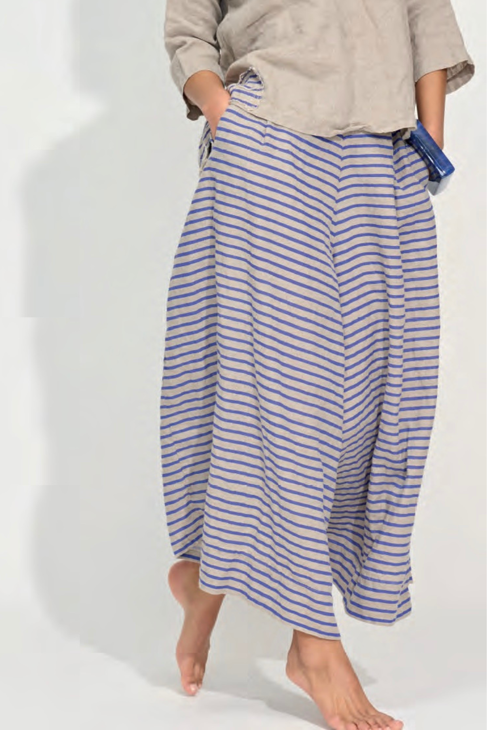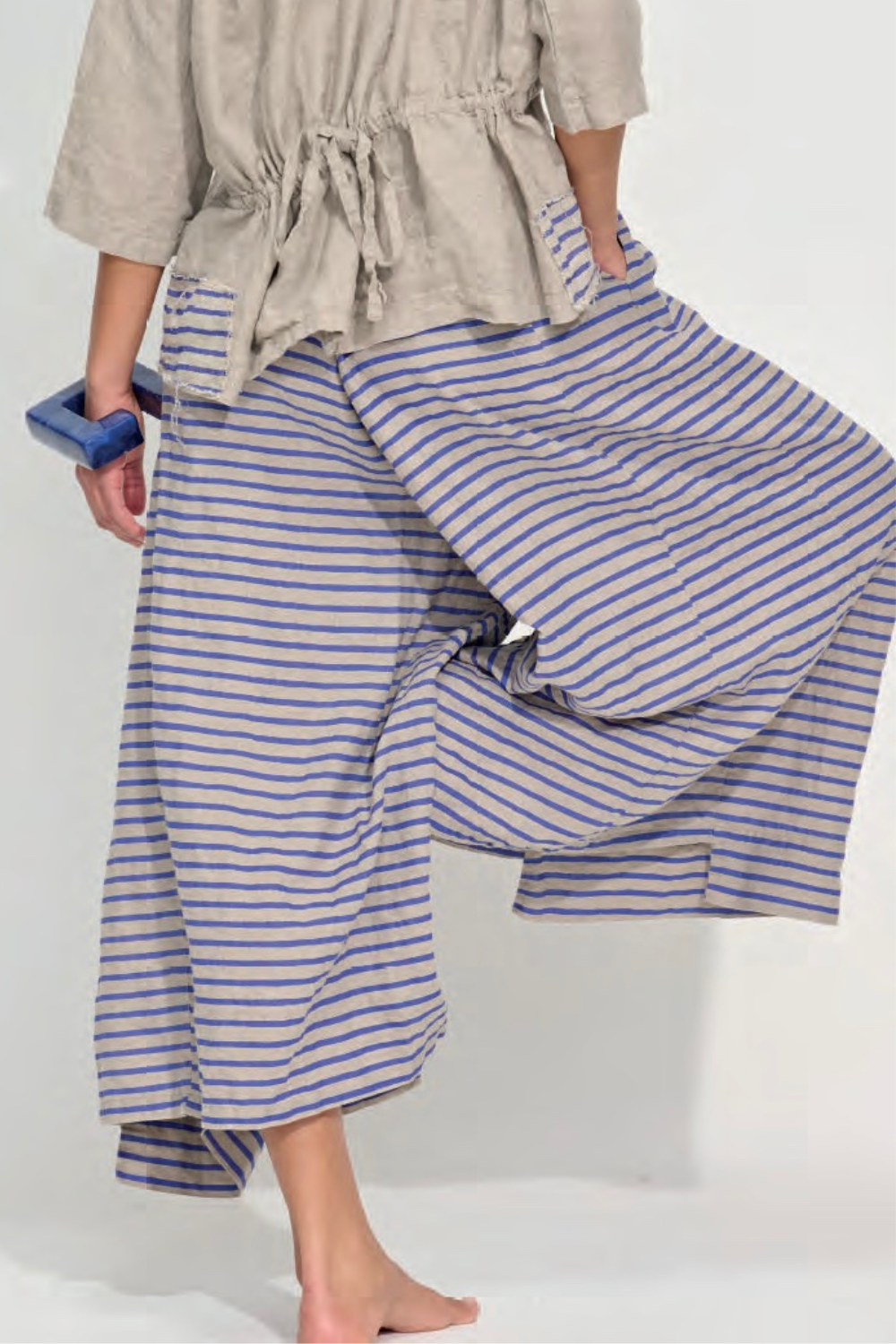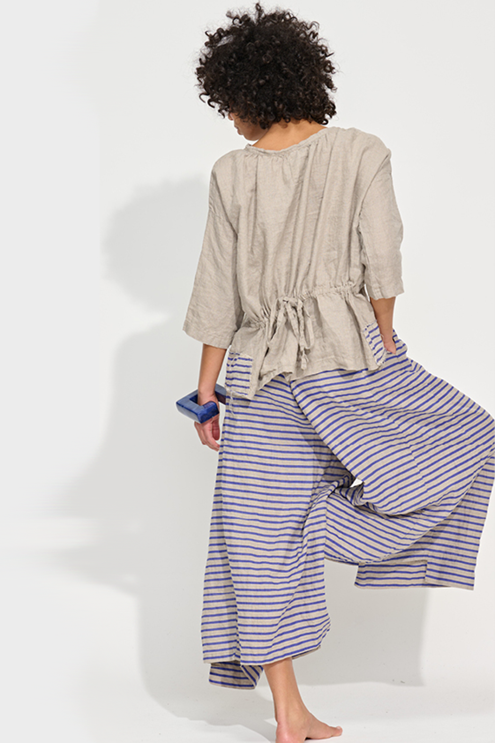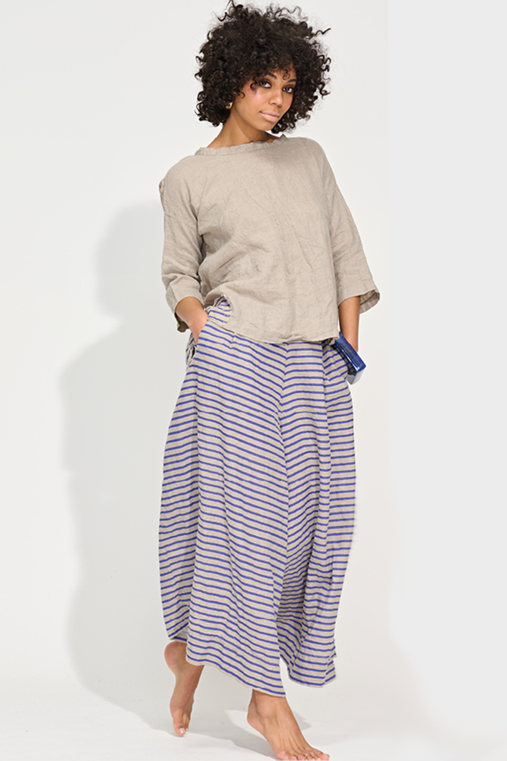 Wide Leg Pants in Flax / Blue Mini Stripe